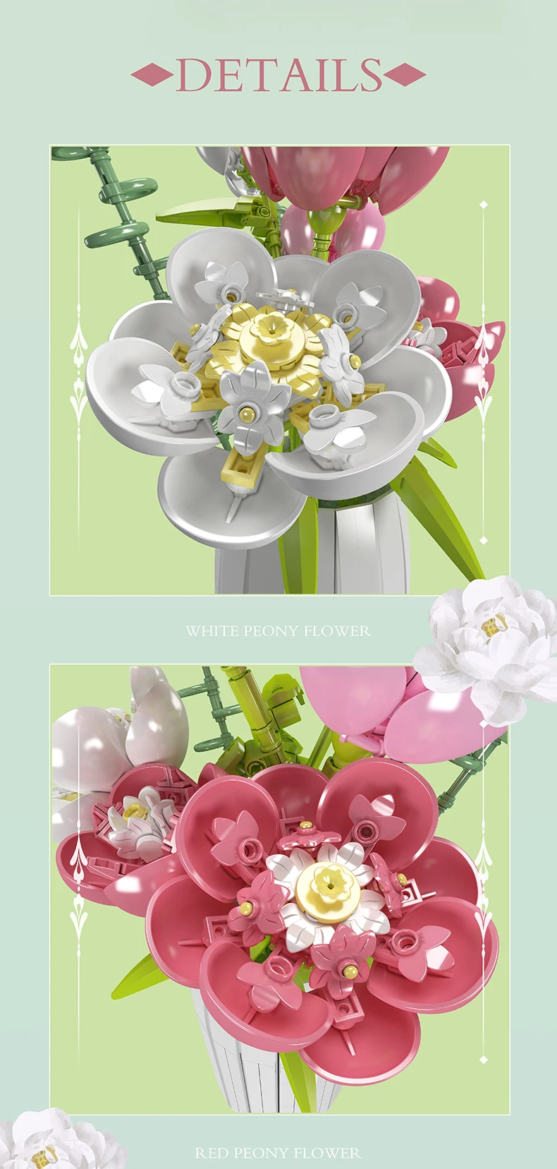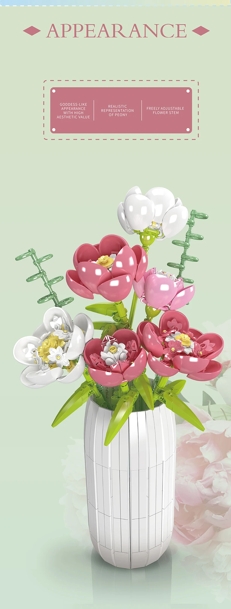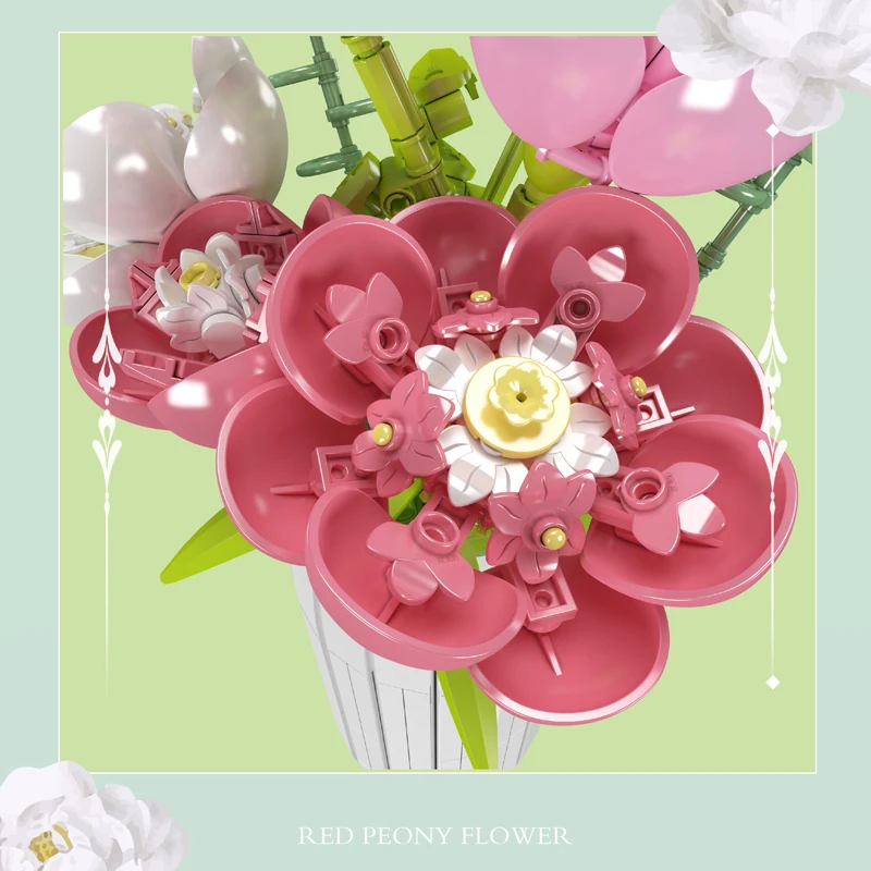 Avoiding the brief existence of real flowers, the Mould King Peony Flowers Bouquet presents a durable alternative, capturing the beauty of nature without its transience.