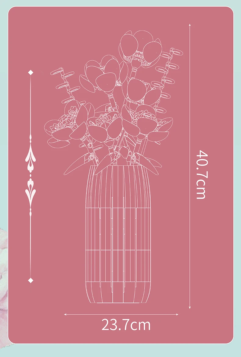Made from a diverse selection of bricks compatible with other brands, this bouquet showcases a range of delicate yellows, soft pinks, and lush greens. You have the flexibility to rearrange the petals and leaves or adjust the lengths of the stems as you see fit. Let your imagination flourish with the customizable features.