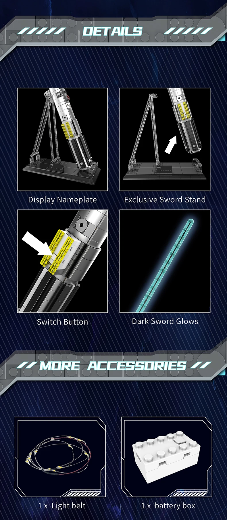 The set also includes an acrylic display stand, making it a striking centerpiece for any collection. Display this laser sword proudly and light up your surroundings with a piece of cosmic legend.