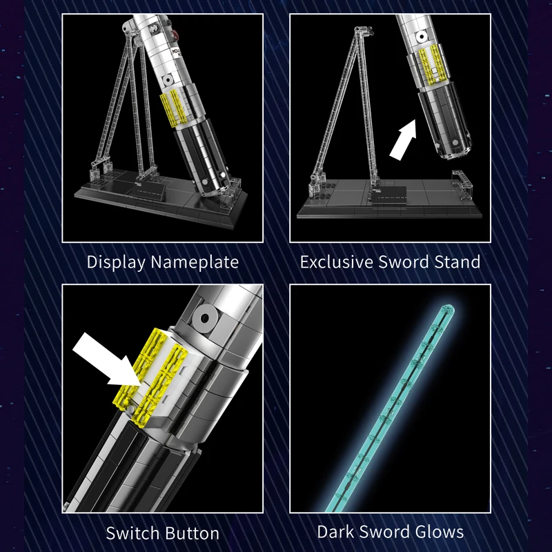 This laser sword replica features a brilliant LED light system that illuminates the blade, casting a vibrant glow reminiscent of the weapons used by galaxy defenders. Builders can enjoy the challenge of assembling the detailed hilt, which mimics the design seen in classic interstellar adventures.