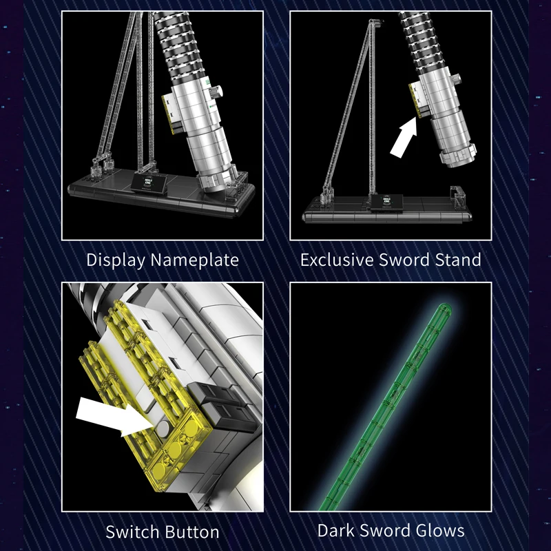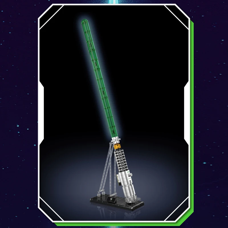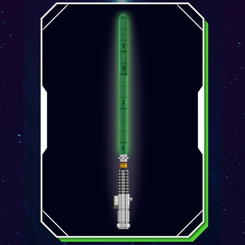 This laser sword lights up with an LED feature that illuminates its translucent green blade, casting a glow that brings the essence of interstellar combat to your home. The detailed construction of the hilt showcases a meticulous attention to design, making it not just a toy, but a collector’s piece.