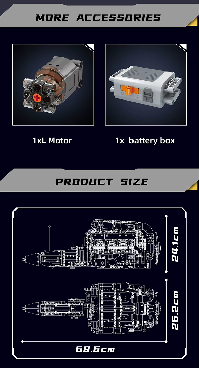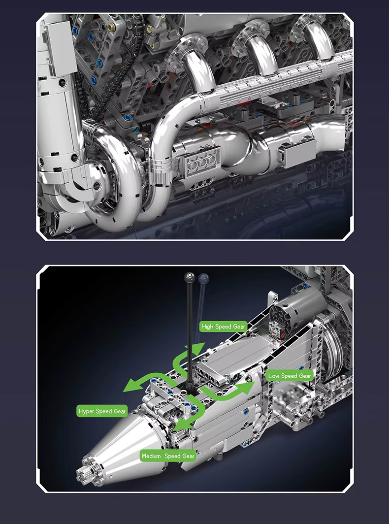 Mould King 10168 Motorised Hypercar W16 Engine & Gearbox Building Set – 2899 pcs