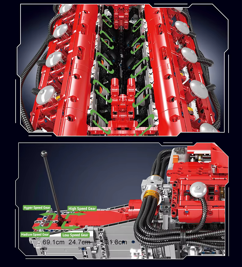 Equipped with a powerful electric motor, this model precisely simulates the dynamic operation of a real V12 engine, allowing you to experience the mechanical beauty of a legendary powertrain.