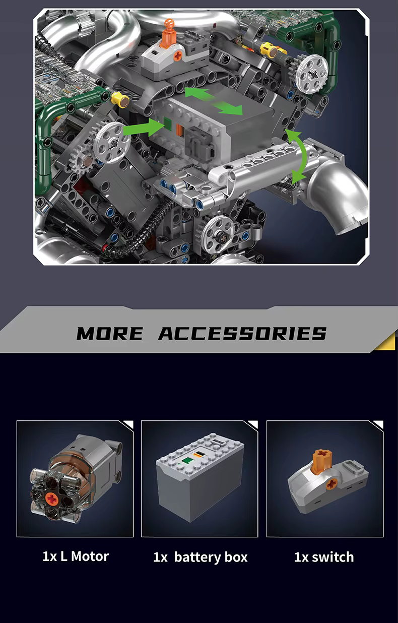 Equipped with a high-performance electric motor, this style engine model faithfully reproduces the dynamic motion of a real V8 tank engine, offering an engaging and immersive building experience for engineering and military enthusiasts.
