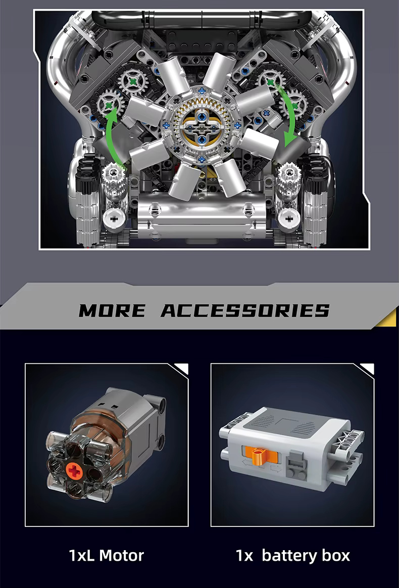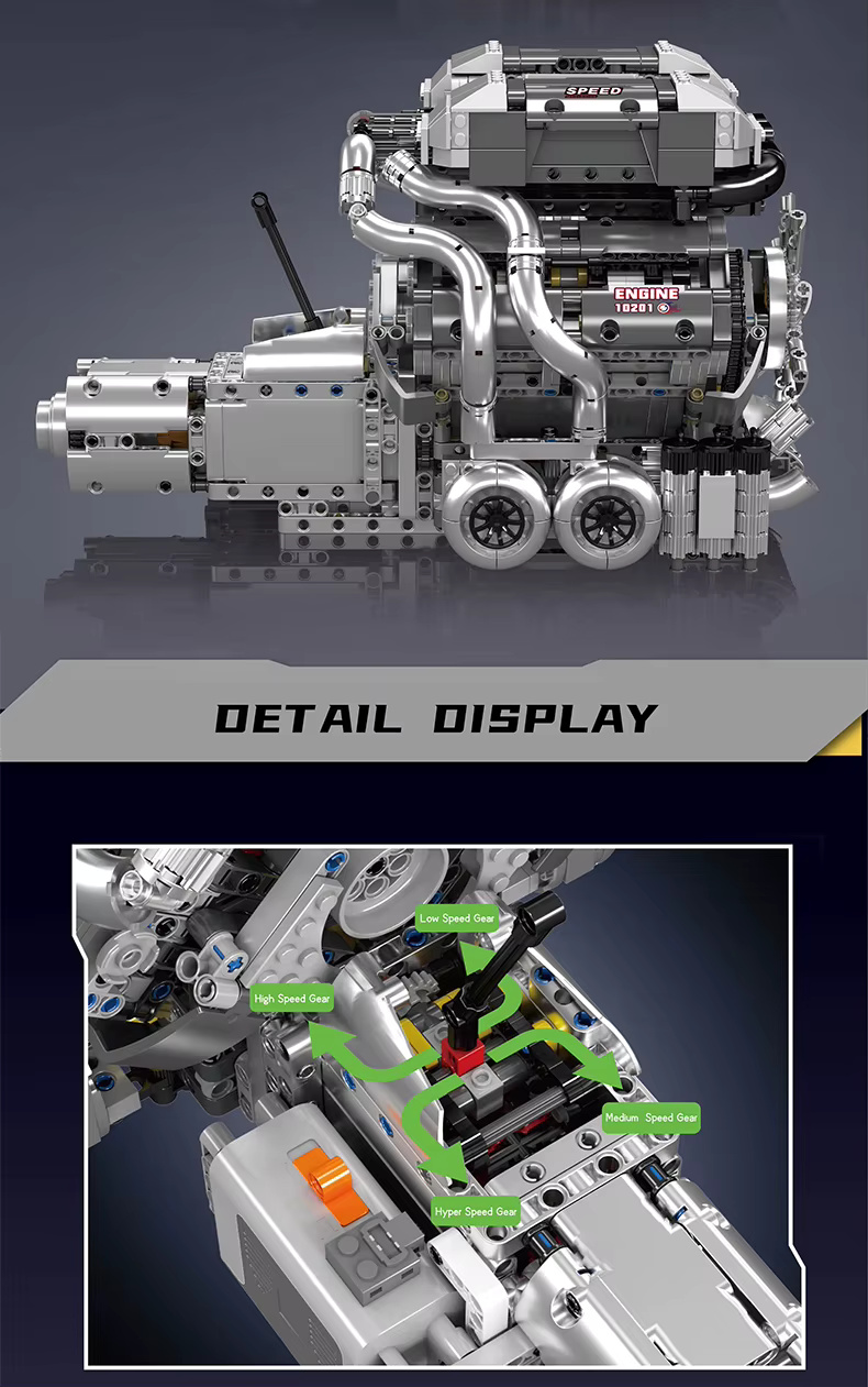 Mould King 10201 Motorised Hypercar W16 Engine & Gearbox Building Set – 2,024 Pcs