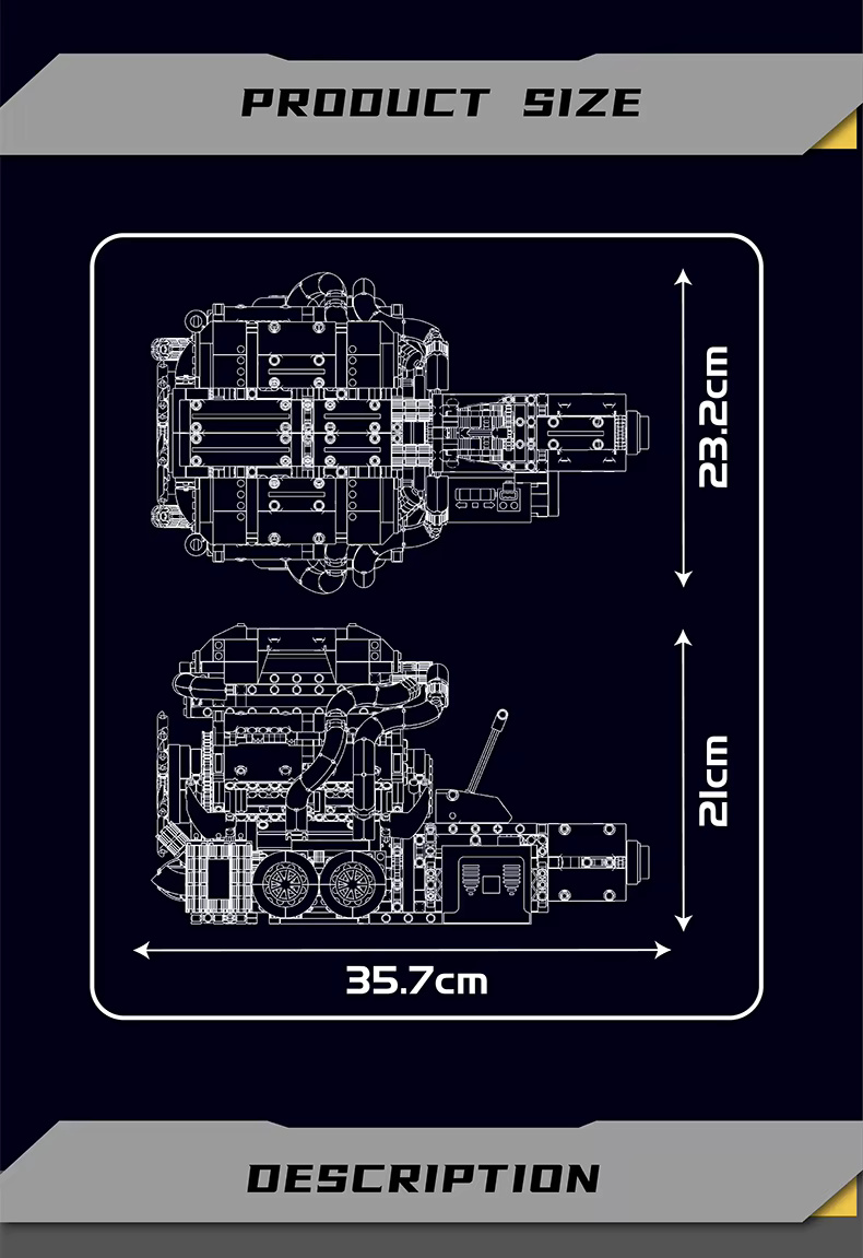 Designed with meticulous attention to detail, the model features a precision-engineered 4-speed gearbox, four turbochargers, and sixteen fully functional pistons. The assembly process includes chrome-plated intake and exhaust manifolds, adding a striking visual appeal that highlights its sleek, high-performance design.