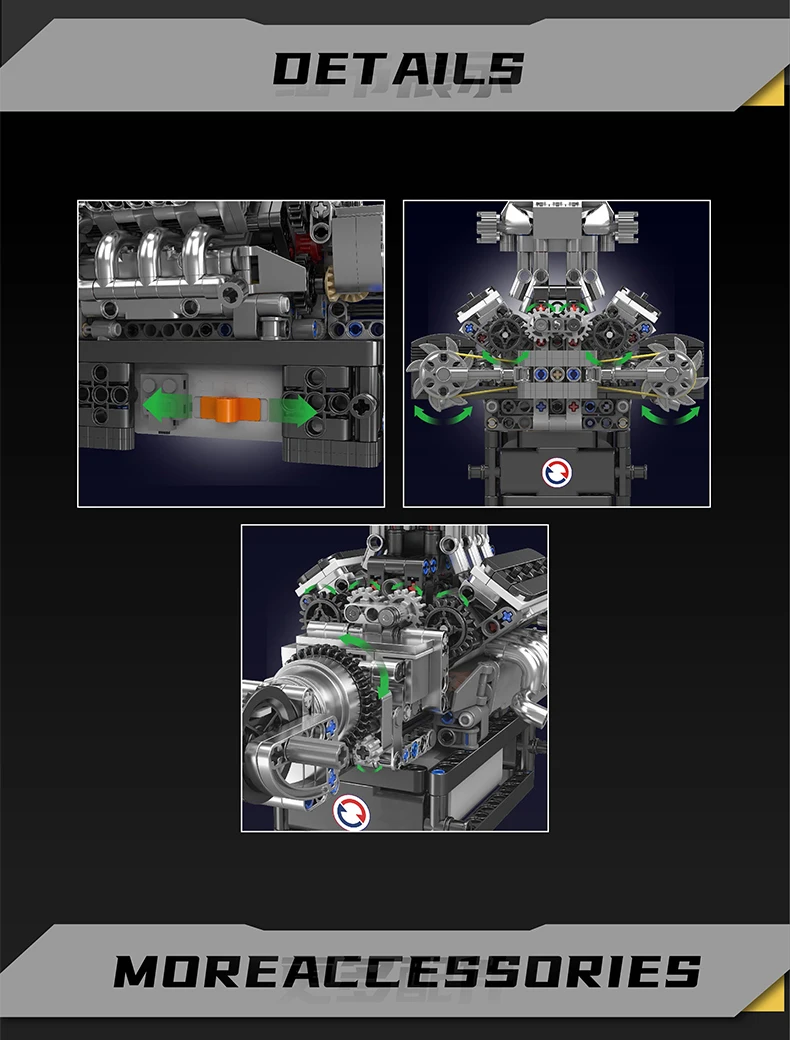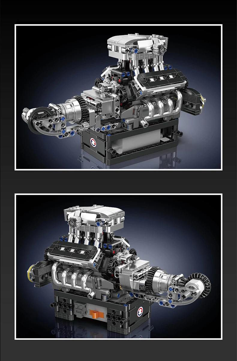 This powerful turbocharged V8 engine replica captures the classic essence of American muscle cars, showcasing a robust supercharger and a bold intake system. With shiny chrome exhaust manifolds and a prominent, exposed valvetrain, this model honors the high-revving turbocharged V8 engines that characterize both classic muscle cars and contemporary supercars. The visible gearbox and output shaft signify a rear-wheel-drive layout, making it an excellent option for enthusiasts of muscle cars and supercars who value the mechanics of high-performance vehicles. Featuring an electric motor, this model enables you to ignite the engine and observe the eight pistons rotating in either direction, offering an interactive glimpse into the complex engineering that powers some of the world’s most opulent and powerful automobiles.