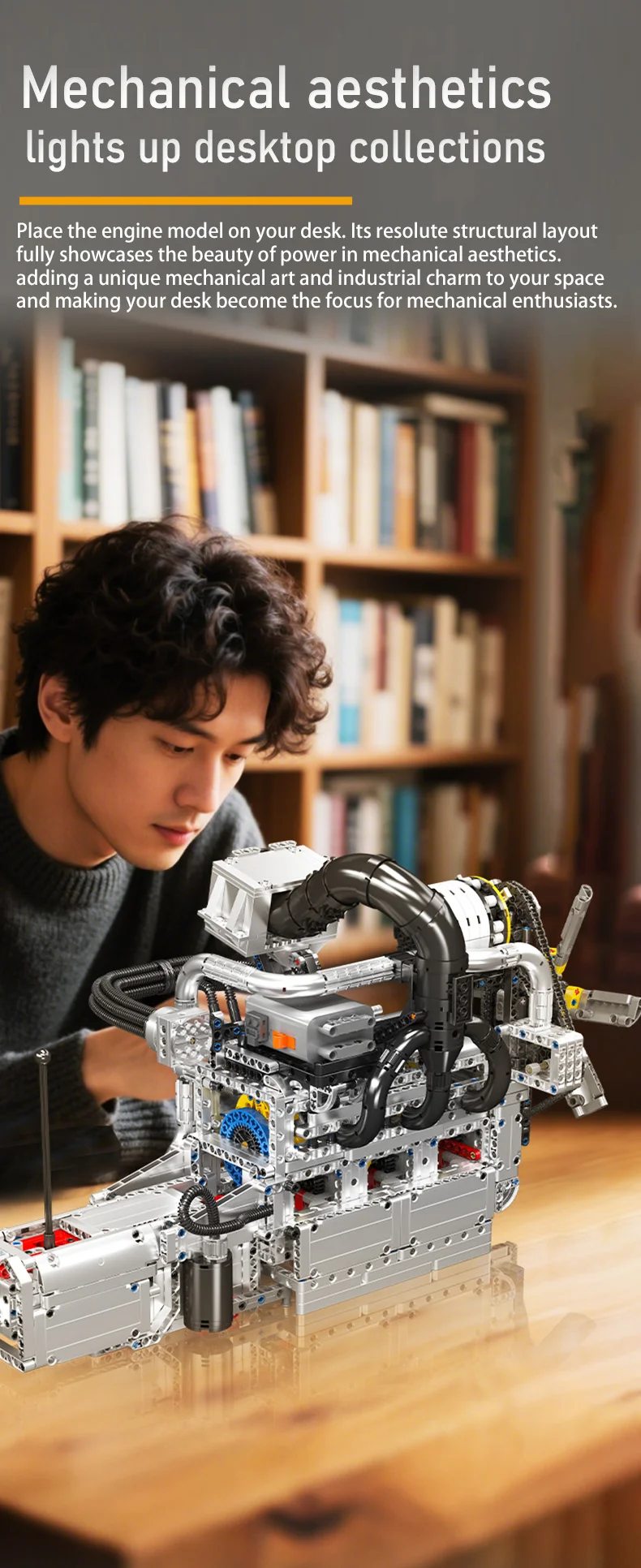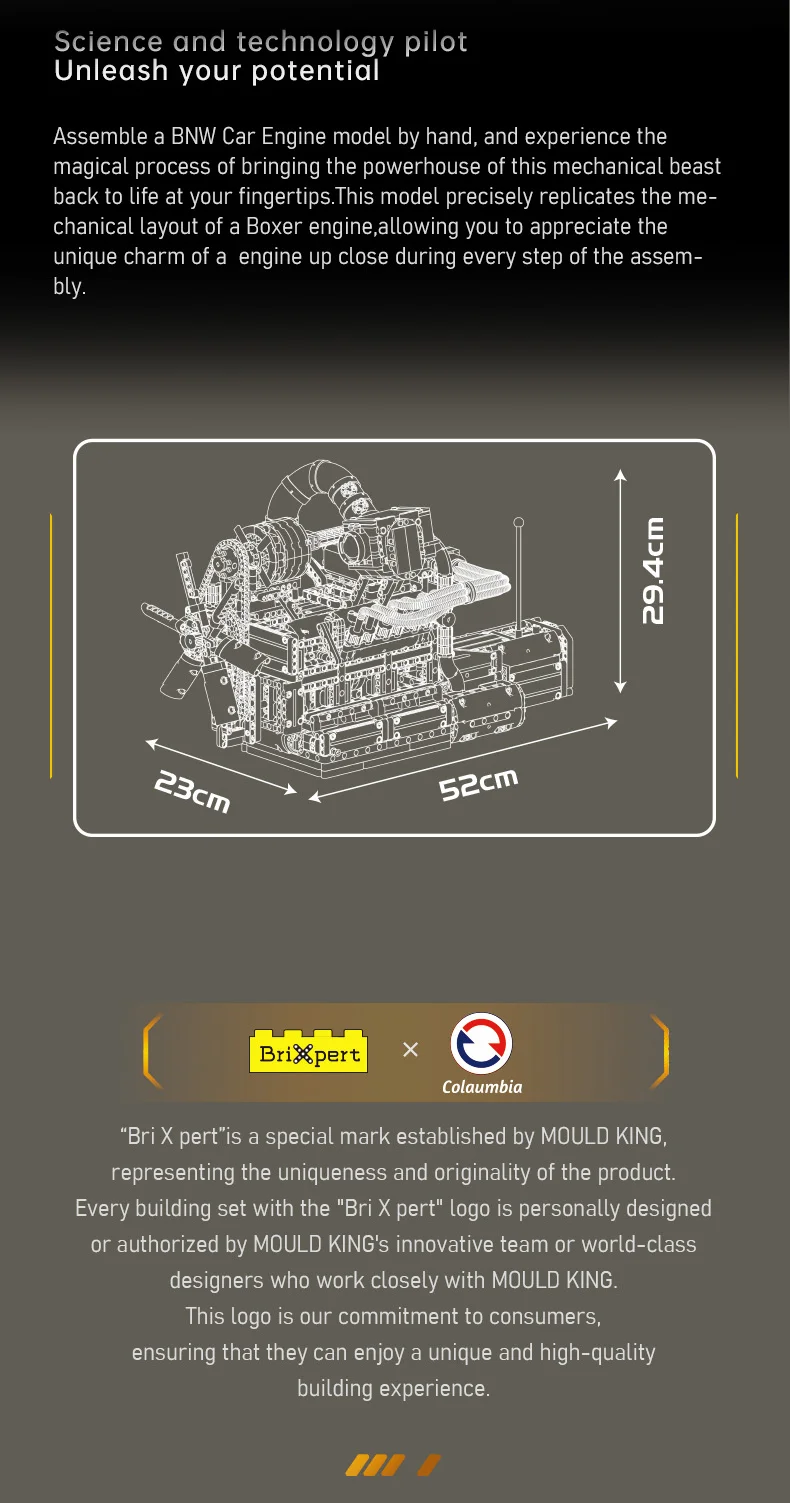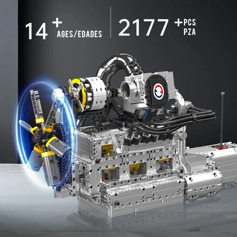 This extensive model embodies the compact yet high-revving essence of the classic Wankel design, offering remarkable detail. Numerous pipes on the sides and top authentically depict air intake and cooling systems, enhancing its mechanical realism. At the top, a black-and-silver intake unit mimics a performance intake manifold or supercharger module, contributing to a heightened racing atmosphere. The chain-driven cooling fan at the front provides an accurate glimpse into how rotary engines operate regarding speed and efficiency within a small framework. Powered by an L motor and battery box, the engine comes to life with a simple switch. The interlinked gears and chain drive replicate the actual motion of a rotary engine, with spinning fans and activated internal components functioning in complete mechanical unity. A 4-speed gearbox facilitates seamless shifts between low, medium, high, and hyper speeds, allowing you to relish the excitement of the rotary’s high-RPM powerband. This blend of authenticity, playability, and display appeal makes it a perfect option for fans of engineering and model building.