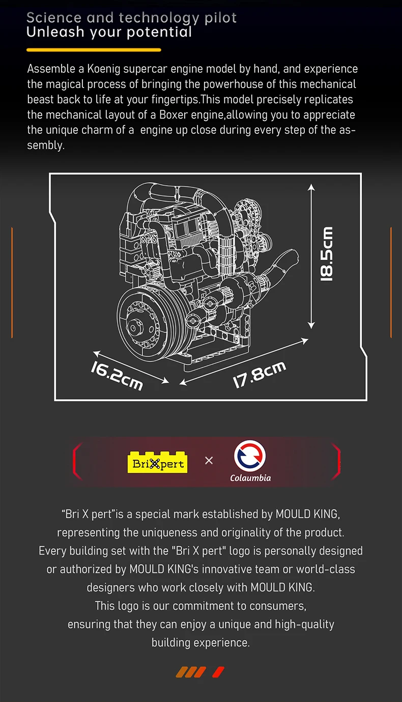 Mould King 10215 Koenig Supercar Engine Construction Kit | 739 Pieces