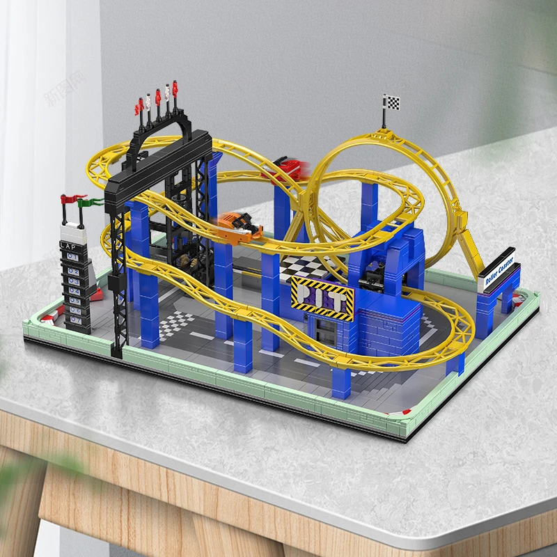 Construct a thrilling amusement park ride using this looping roller coaster set. Its bold curves and vivid colors combine to form an exciting centerpiece for display.​