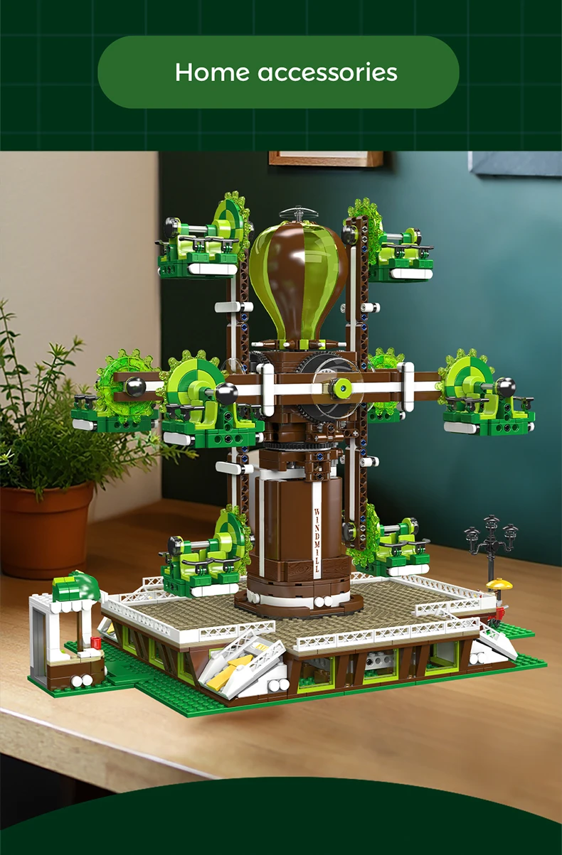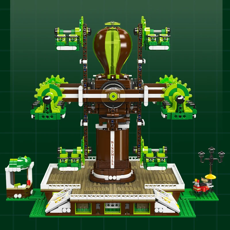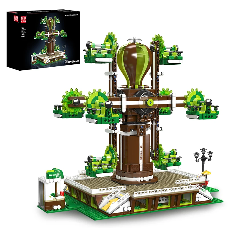Introduce the harmonious integration of nature and technology with the Nature Tree Windmill Building Block Set – a captivating combination of green energy and mechanical craftsmanship. This one-of-a-kind model, inspired by amusement rides, showcases a towering tree-shaped windmill that merges the aesthetic allure of a forest with the kinetic energy of wind power.