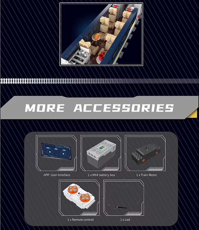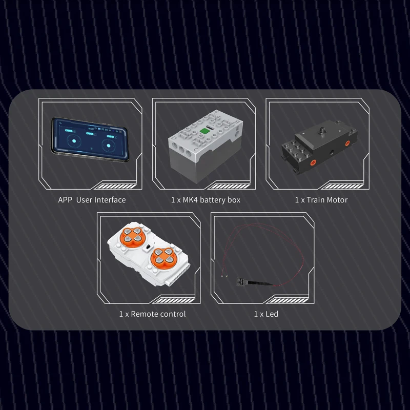 Designed for immersive building and interactive fun, the train is powered by a Train Motor and MK4.0 Power Module. You can drive it using the included 2.4G remote control or via Bluetooth using the companion app. Dual front LED headlights provide a realistic touch for low-light or “tunnel” adventures.