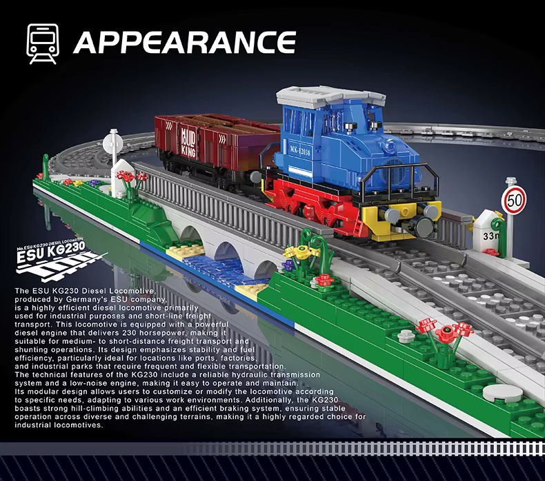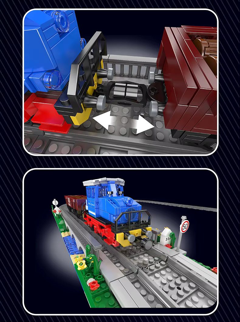 Assemble the locomotive, connect the detachable freight car, and set the stage with an oval track over 3 meters long and a finely detailed railroad bridge. The tracks are also lined with various flowers and plants for added realism.