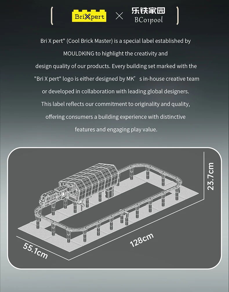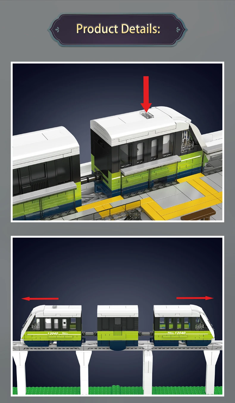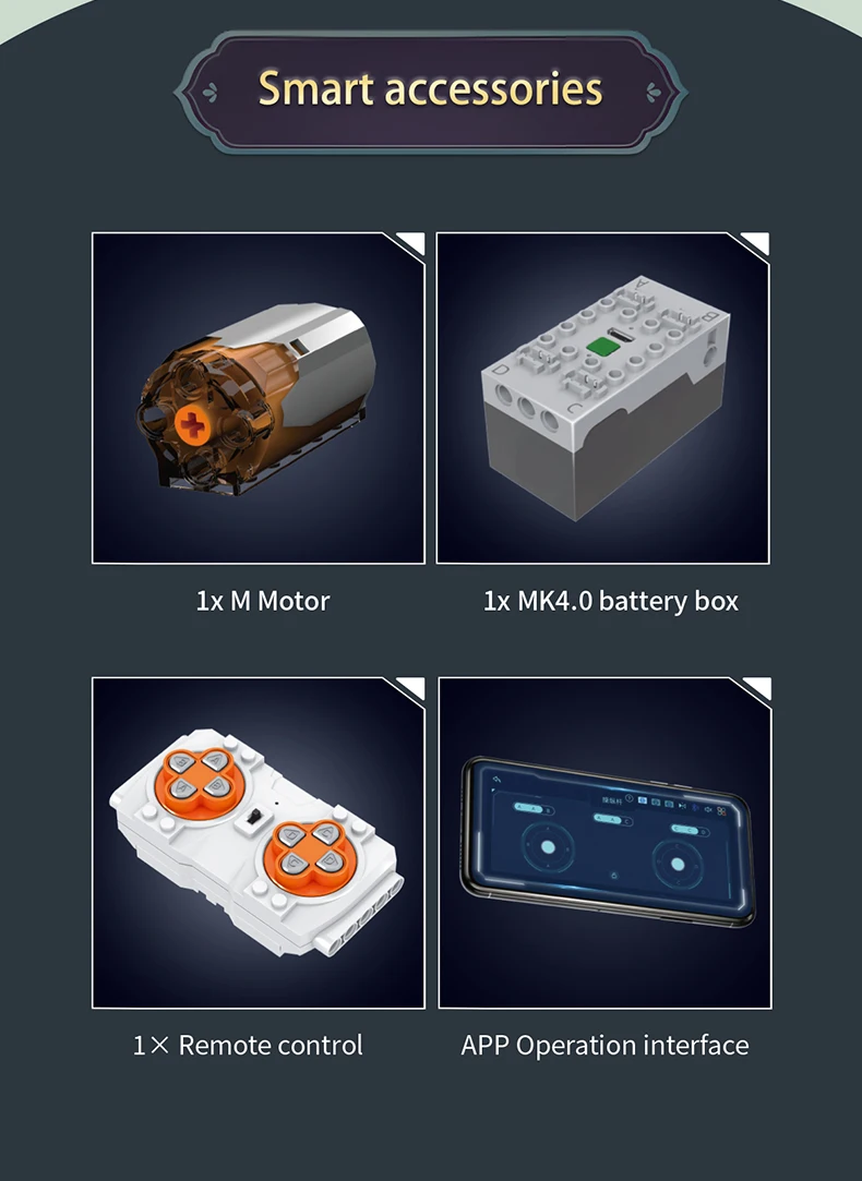 Included is a powerful M motor and MK 4.0 battery module, enabling remote control functionality. Simply lift the roof to access the battery and switch it on. The train can then move forward and reverse smoothly along the curved tracks, offering an immersive building and play experience.
