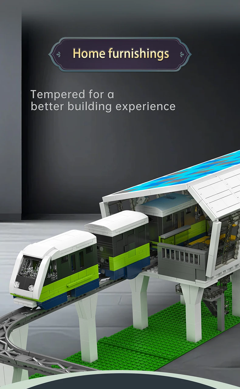 Experience the innovation of modern urban transit with this Italian Marconi Express Light Rail Train building set. Based on the real-life monorail system connecting Bologna Airport to the central railway station, this model brings elevated rail engineering to life in stunning detail.