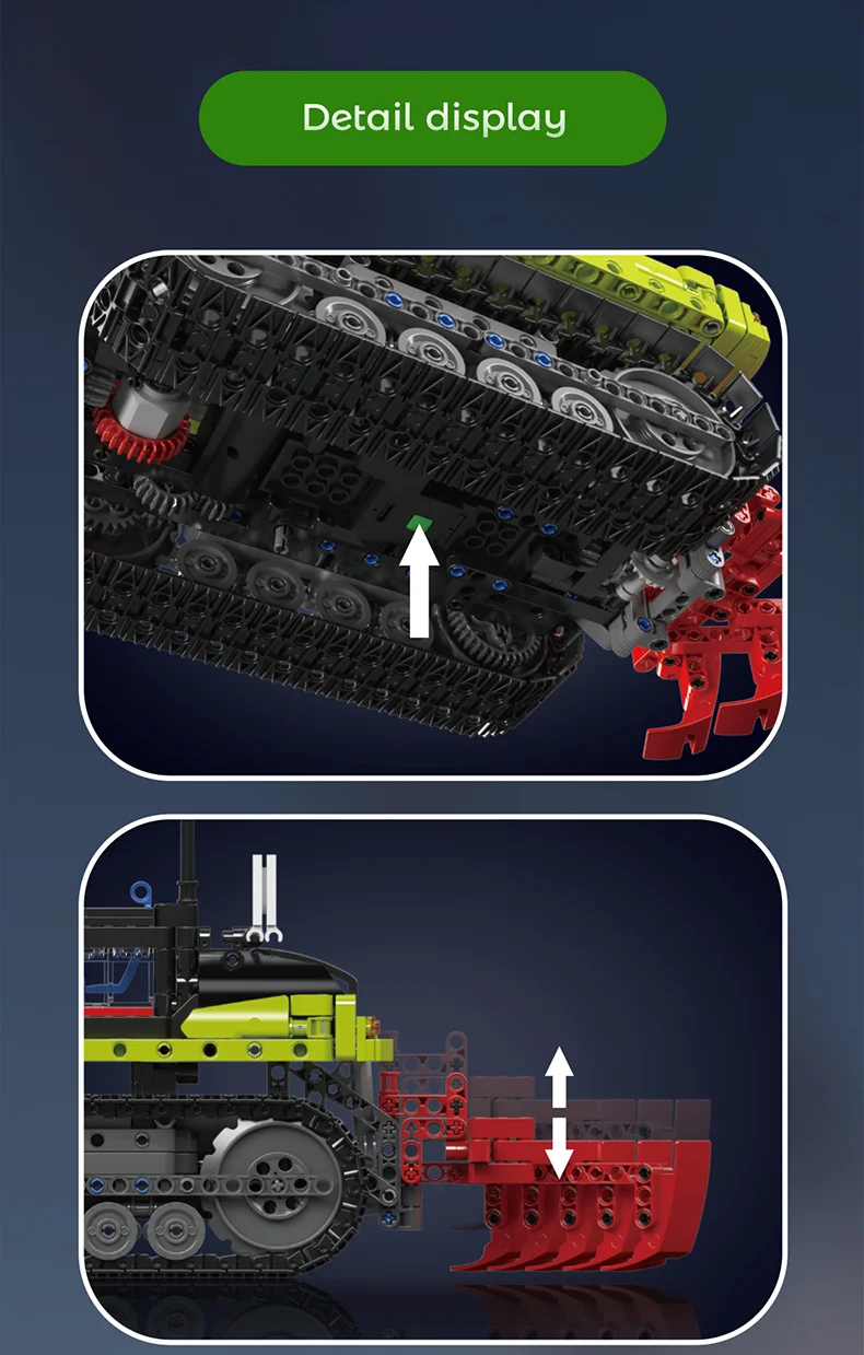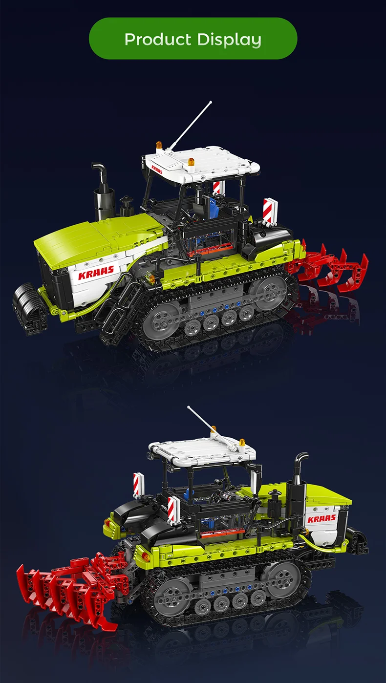 Revive the excitement of agriculture with this remote-controlled tracked tractor building kit. Inspired by contemporary farm tractors, it melds authentic aesthetics with interactive features.