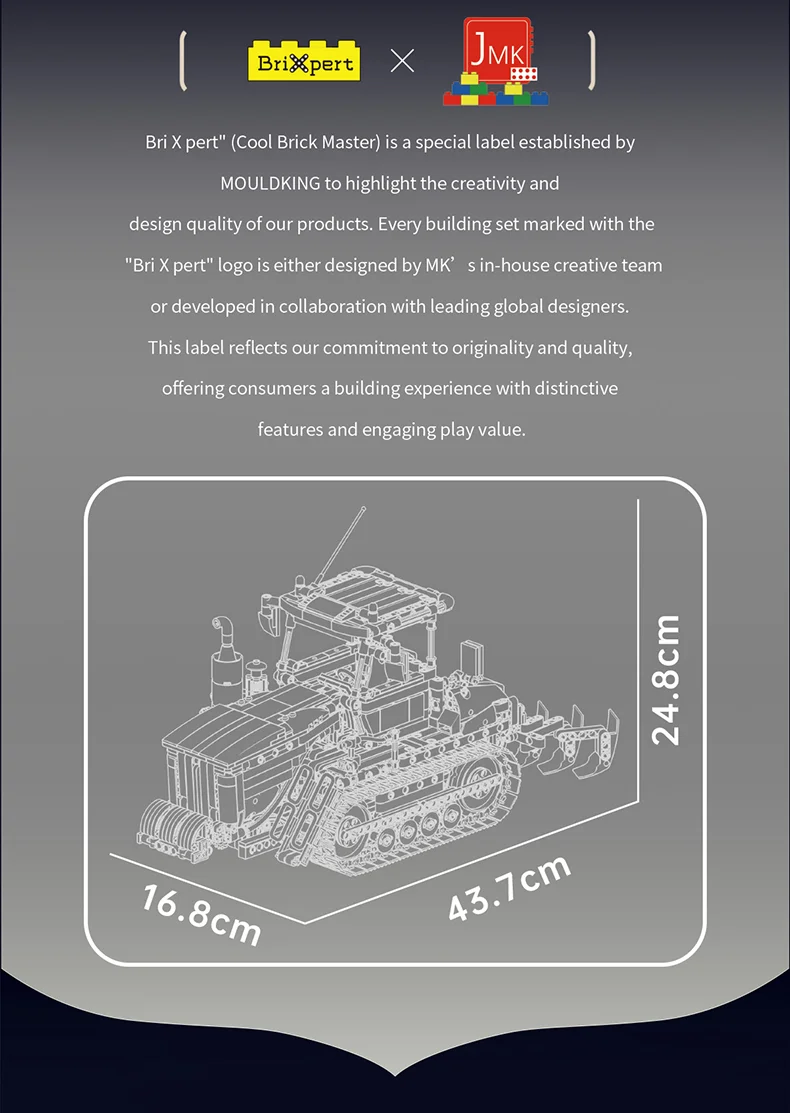 Measuring 43.7 × 16.8 × 24.8 cm when completed, this tractor not only serves as an impressive display item but also offers thrilling remote-controlled gameplay.