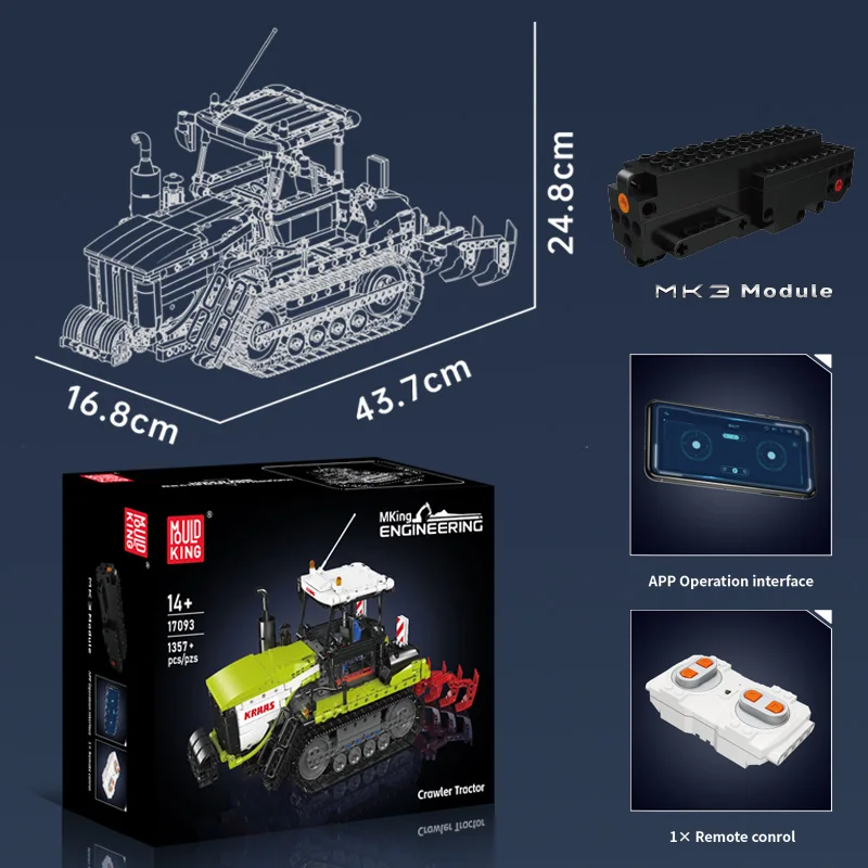 Mould King 17093 Remote-Controlled Tracked Tractor Construction Kit | 1,357 Pieces