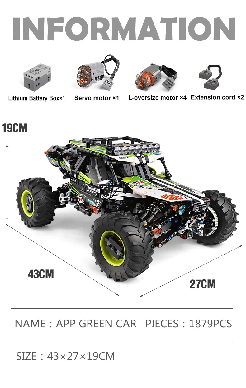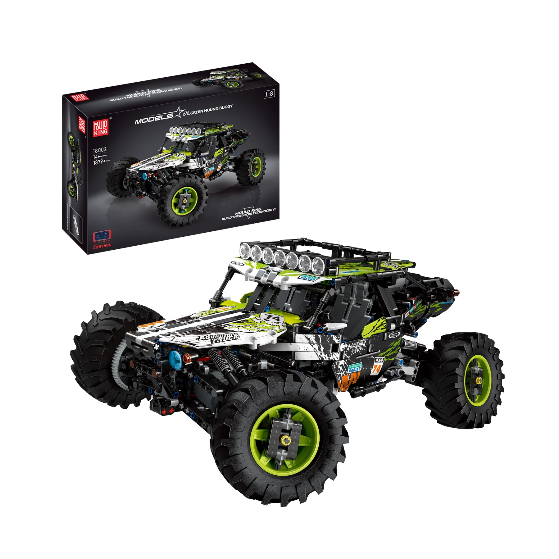 Experience the ultimate off-road adventure with the MOULD KING 18002 Green Hound RC Buggy! Measuring nearly half a meter long, this 1:8 scale, 1,879-piece behemoth is built to conquer any terrain. Why buy this model? Because it’s a fully functional, unstoppable beast! Equipped with large high-torque drive motors, independent wheel suspension, long-travel shocks, and massive 10cm wheels, it effortlessly powers through sand, mud, and steep inclines. Whether you crave a highly rewarding building challenge or a durable RC crawler for intense outdoor action, the Green Hound delivers thrilling performance and unmatched quality.