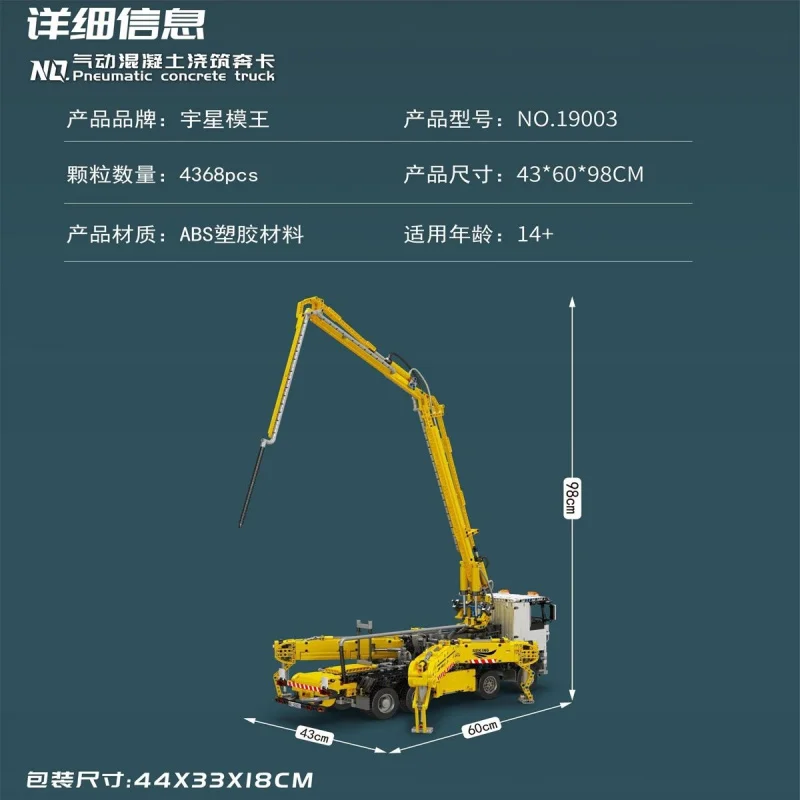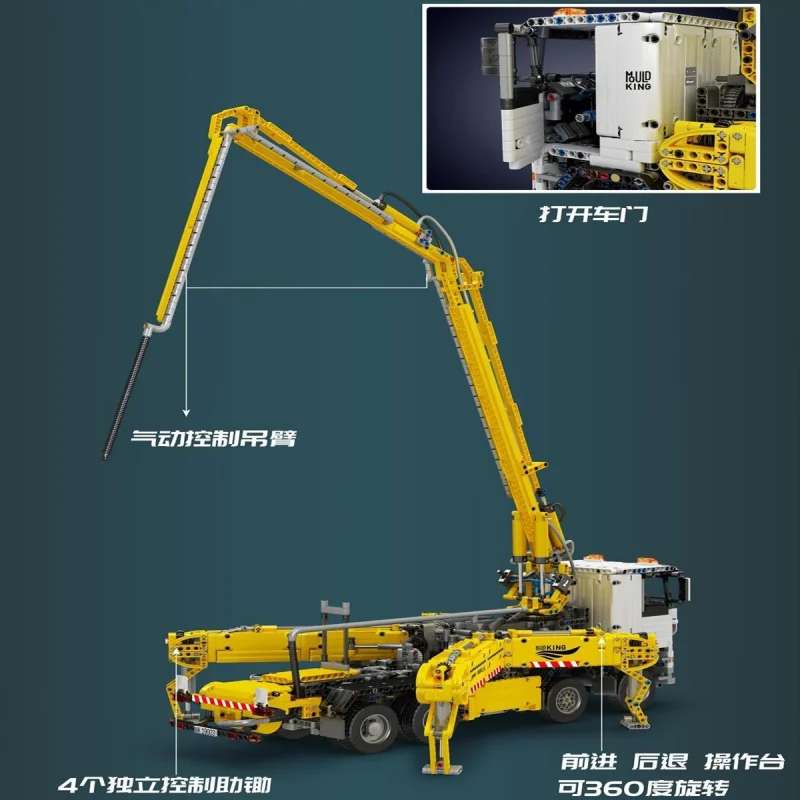 Take your engineering skills to the next level with the MOULD KING 19003 RC Pneumatic Concrete Truck. Why is this model a must-buy? Standing an impressive one meter (39+ inches) tall when the boom is fully extended, this 4,368-piece behemoth is the ultimate showstopper for any collector. It perfectly replicates a real-world concrete pump truck, featuring complex mechanical stabilizer legs, a tilting cab, 4-wheel steering, and a detailed drive train. If you are looking for a highly rewarding, master-level building challenge that transforms into a massive, breathtaking display piece, this set is engineered exactly for you.