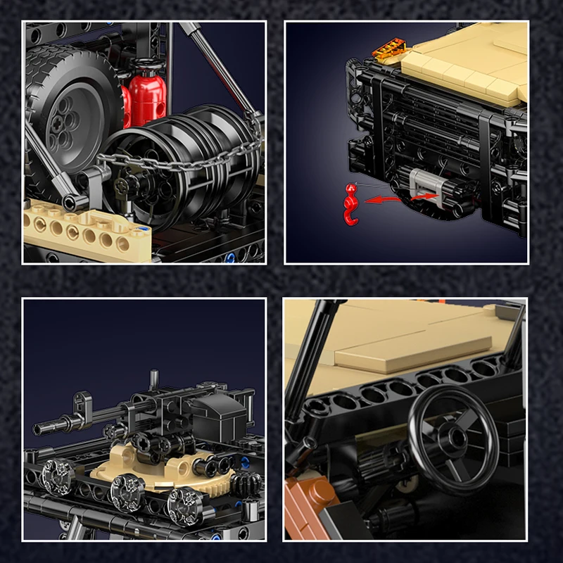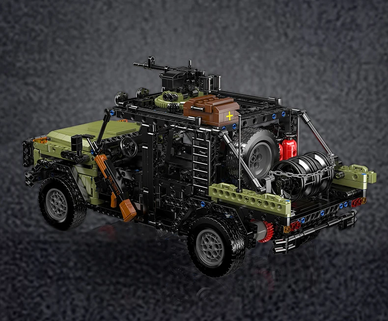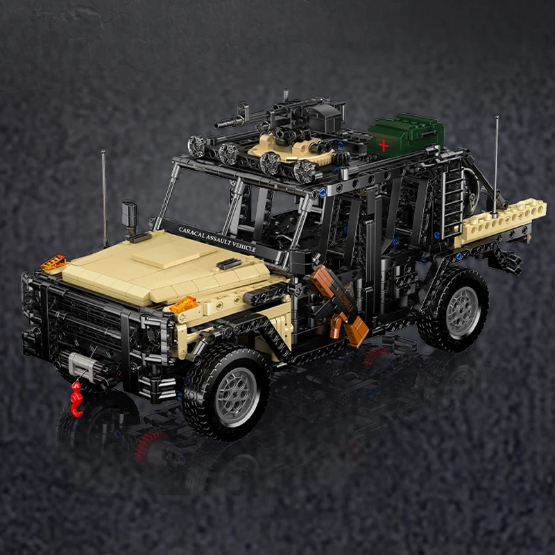 Step into the realm of tactical survival with the Mould King Caracal Assault Vehicle, a robust military-themed off-road model crafted for extreme conditions. Constructed from 1,577 precisely molded bricks, this formidable 4×4 merges the design of a heavy-duty Hummer with various makeshift weaponry and survival equipment—ideal for post-apocalyptic escapades or “zombie world” operations.